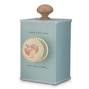 In the long tradition of kids buying their parents self-serving presents, Astrid got her dad a Kerri Lee music box for his birthday. They’re pretty sturdy, the tunes are nice and the pictures are retro and sweet. Not exactly as ornate or interactive as I was looking for, but a nice addition to the nursery and a basic mechanism for when she gets the hang of twisting the knob.