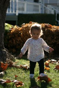 For babies, they carry basics like onesies/bodysuits in fetching colors like light pink and burnt orange as well as a great selection of sweaters (mostly handy cardigans, some in cotton solids, more in heavier weights and seasonal patterns that I love: not loud but still colorful) and shirts (manly blue stripes for boys, peasant blouses for little girls in flowered prints – on Astrid in the photo). Some of the lighter weight clothes don’t look like the sturdiest – a few hanging threads to snip – but none of the ones I’ve had Astrid in for the last eight months have torn or disintegrated, so they’re tough enough.